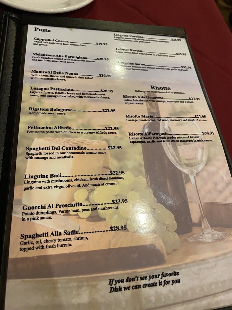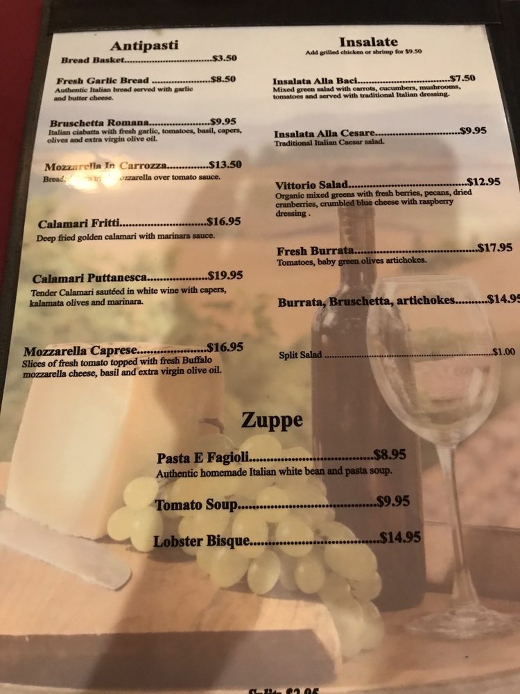 - Soups: Warm up with a comforting bowl of Pasta e Fagioli, a traditional favorite.