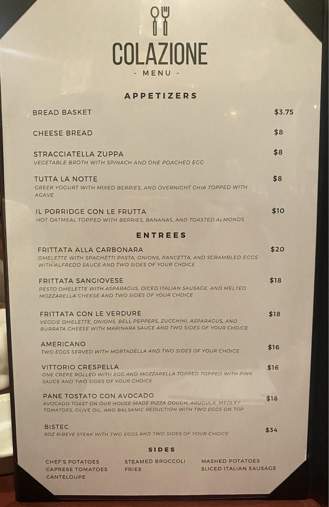 - Appetizers: Start your meal with Bruschetta Romana, where fresh tomatoes meet aromatic basil, or treat yourself to the creamy indulgence of Mozzarella in Carrozza.